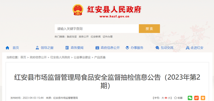 中国质量新闻网讯 近日,湖北省红安县市场监督管理局发布食品安全监督抽检信息公告(2023年第2期)。