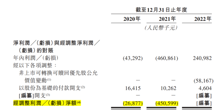 其毛利润也分别从3.3亿元、3.6亿元增长到12.5亿元;业绩也实现了扭亏为盈,从前两年分别亏损0.43亿元、4.61亿元,到2022年利润为2.4亿元;经调整亏损在2020年、2021年分别为0.27亿元、4.5亿元,2022年并未披露这一数据。