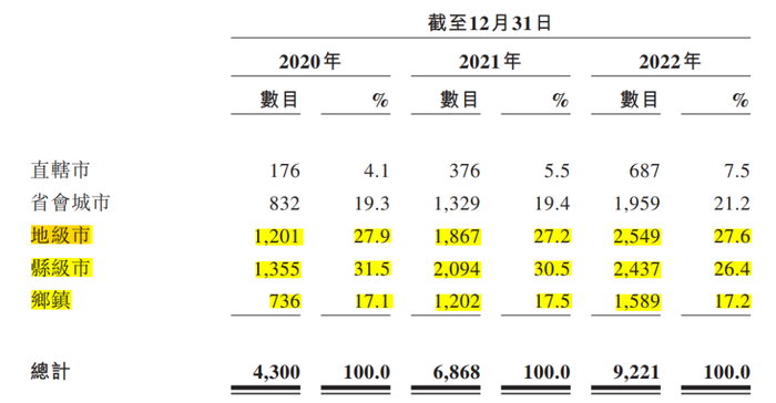 另外,营收方面,2022年锅圈在县级市、乡镇一级的加盟门店合计贡献了超24亿元,占总营收近四成,往年两者总营收占比均超40%。