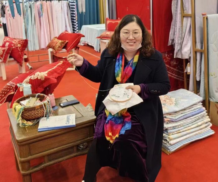 “能与山东艺达有限公司和山东云龙绣品有限公司共同参与这次博览会,我感到非常荣幸!”威海秀苑工艺美术有限公司总经理、山东省工艺美术大师邢赛楠激动地说,作为文登鲁绣非遗传承人,她非常希望将这些技艺传承下去。据了解,近年来文登加快工艺家纺品牌发展步伐,出台了一系列鼓励扶持政策,推动文登家纺产业迅速发展,叫响了“文登工艺家纺”区域品牌,已经发展成为中国工艺家纺名城。