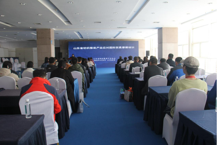 为有效应对可能发生的国际贸易纠纷和摩擦,博览会期间由省商务厅主办,省纺织服装行业协会承办的山东省纺织服装行业应对国际贸易摩擦培训在威海国际展览中心A馆论坛区举行。培训邀请了近30家企业,近百余人参加培训。参加培训企业负责人表示,“这场培训会来的太及时了,将为我们公司未来进行出口贸易提供了丰富的借鉴,让企业少走很多弯路。”
