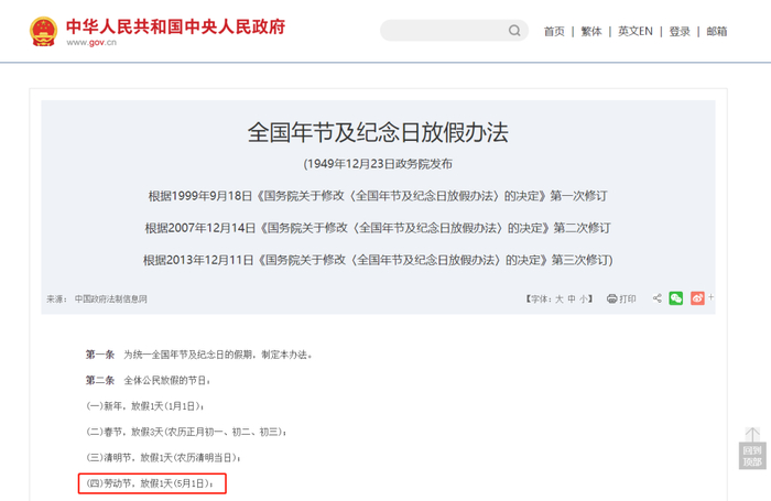 五一劳动节的确只放1天假
