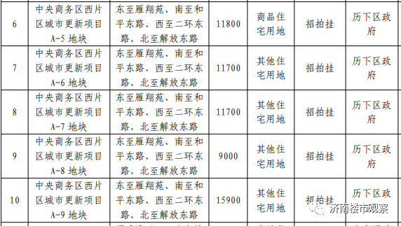 济南市2023年土地供应计划也显示,2023年CBD西片区将出让5宗宅地,其中A5地块是普通商品房用地,A6、A7、A8、A9是安置房用地。