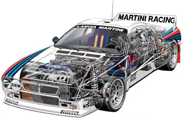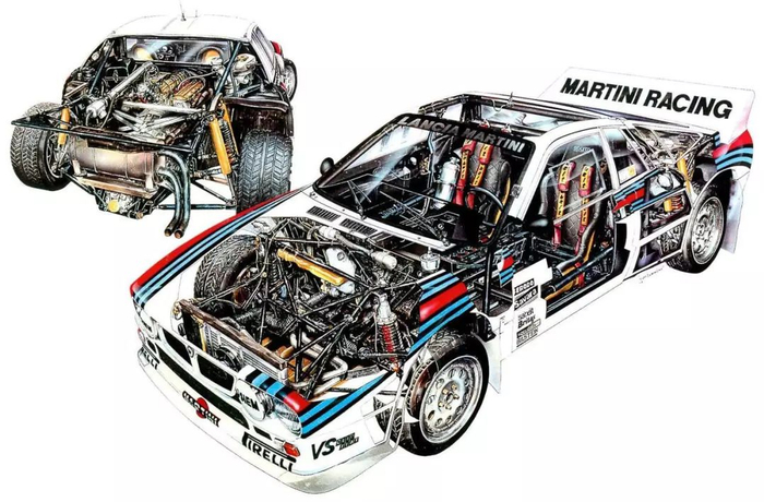 但是蓝旗亚037其实是非常“严格”的基于量产车打造的。仅仅只有仪表一部分是和量产车一致,几乎所有机械学部件都被改变了。