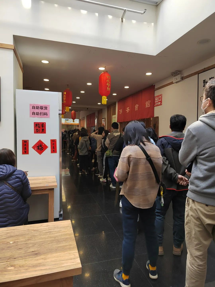 到了中午饭点现场更夸张,素斋窗口前面排了一条老长的人龙。