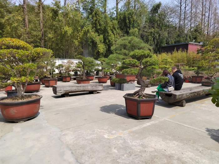 走出文创中心,不远处还有盆景园,光是那个盆上的字都可以打卡了。
