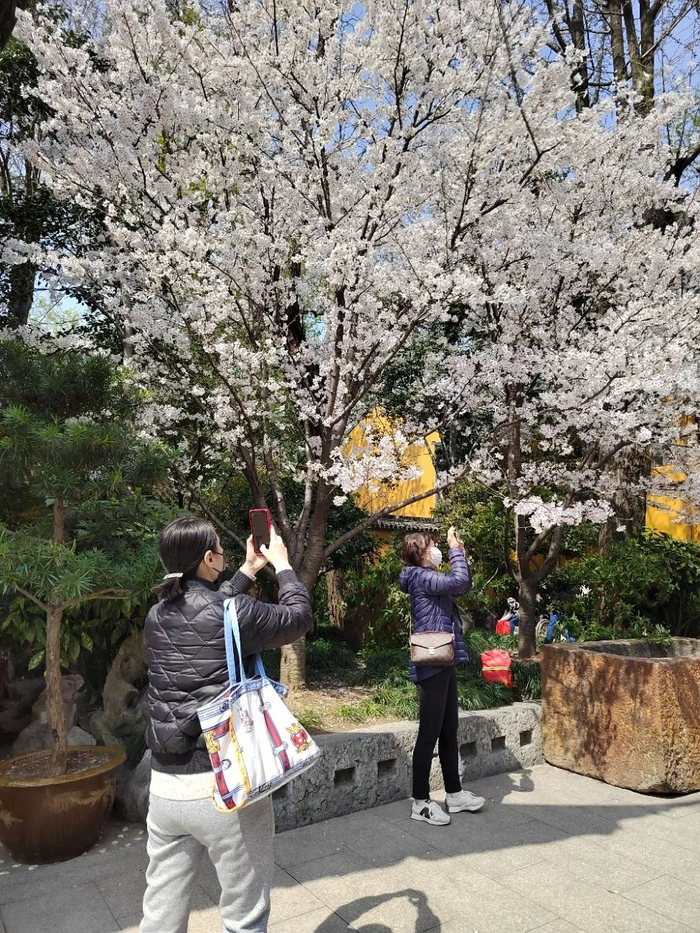 樱花的季节里,寺庙里的樱花也没被人放过。