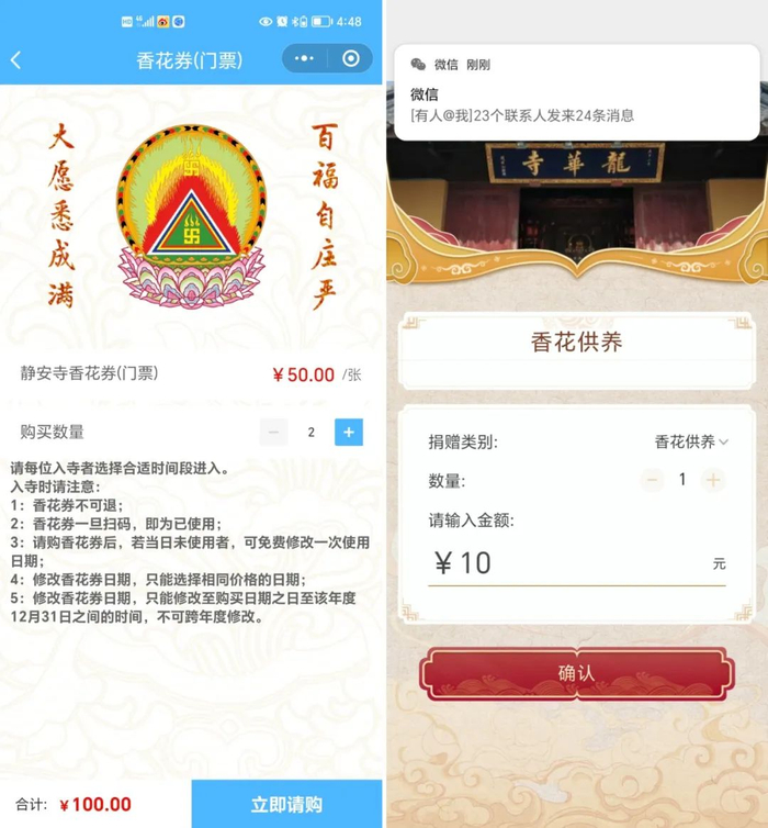 门票什么的基本都已经线上化操作了,静安寺、龙华寺、玉佛寺都叫的香花券。