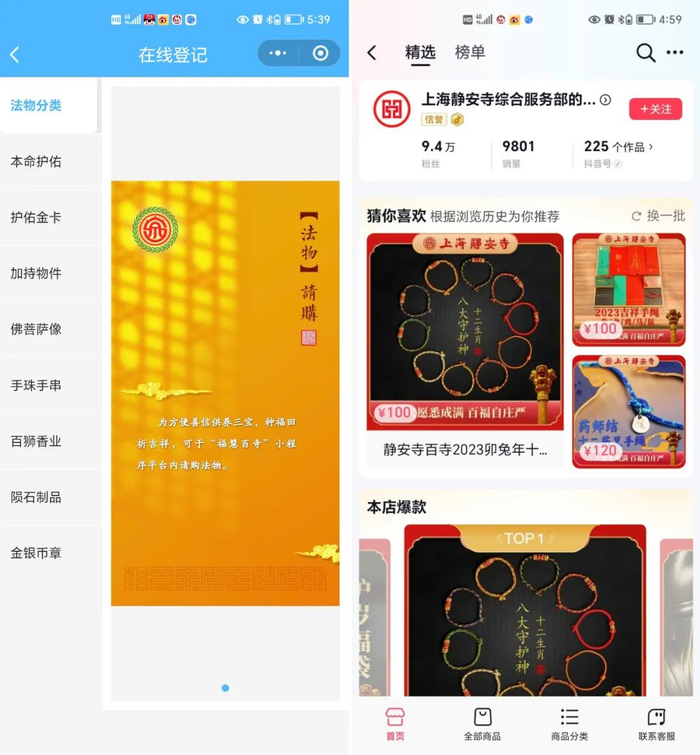 而且前面说的各种法物手串都在静安寺自己的线上平台可以买到,意识很前卫了。