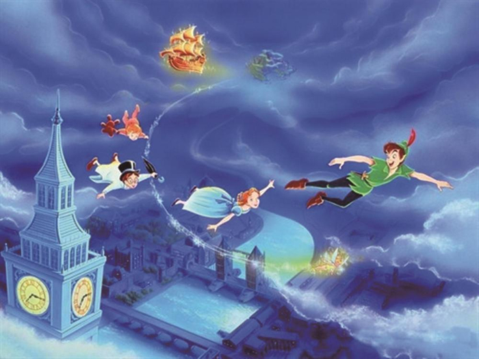 在我的眼前,总是浮现那个从窗子里钻进来的小男孩,他和他的影子搏斗,和胡克打嘴仗,和温迪生气,却又无比温存。还有那个总是怒气冲冲的小精灵,脾气总是很好很好的温迪,在永无岛上转圈圈的小朋友、印第安人、胡克船长,肚子里有个闹钟的鳄鱼,嘀嗒、嘀嗒……真吓人呀。电影中的每一个镜头都叫人难以忘怀。