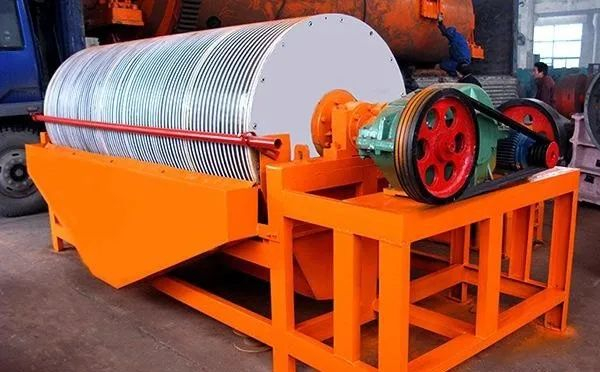 由于原料中所含的赤铁矿、褐铁矿和黑云母等矿物具有弱磁性,利用湿式强磁选机在磁场强度为8×105A/m(安培/米)以上时可选出;而对含杂以磁铁矿为主的强磁性矿物,则采用弱磁选机或中磁选机进行选别。为进一步去除其他少量的弱磁性矿物(如角闪石、辉石以及磁性矿物与石英的连生体)时,可再采用磁场强度大于12000高斯的高梯度磁选机进行二级磁选。