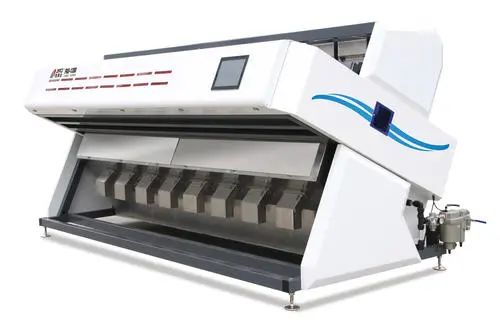 色选是根据物料光学特性的差异,利用光电探测技术将颗粒物料中的异色颗粒自动分拣出来。色选机主要由给料系统、光学检测系统、信号处理系统和分离执行系统组成。