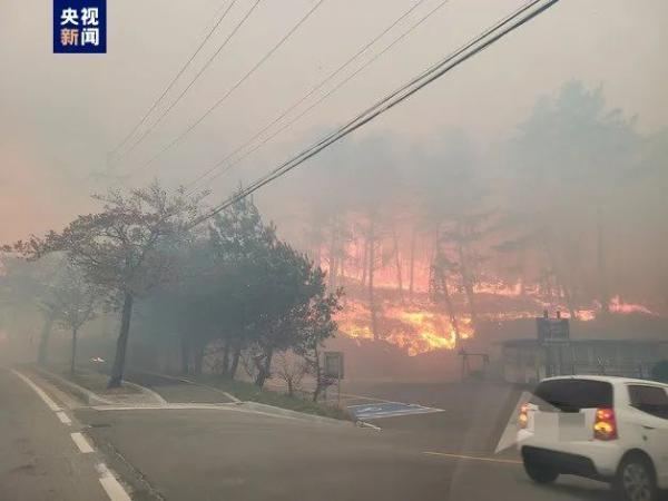 当天稍早前,韩国江原道江陵市镜浦附近一座野山发生火灾,由于当地刮起强风,火势迅速扩散,消防部门在上午9时19分发布了“山火第二阶段”应对命令,并紧急疏散了周边居民。灭火工作正在进行。