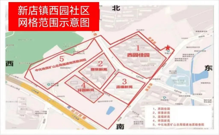 东起楼铺路;西至北三环路;南至西园路;北至玄南岭路,下辖西园佳园、丽景新苑、温福新苑、祥园新苑、中化地质矿山总局福建地质勘查院5个小区网格。