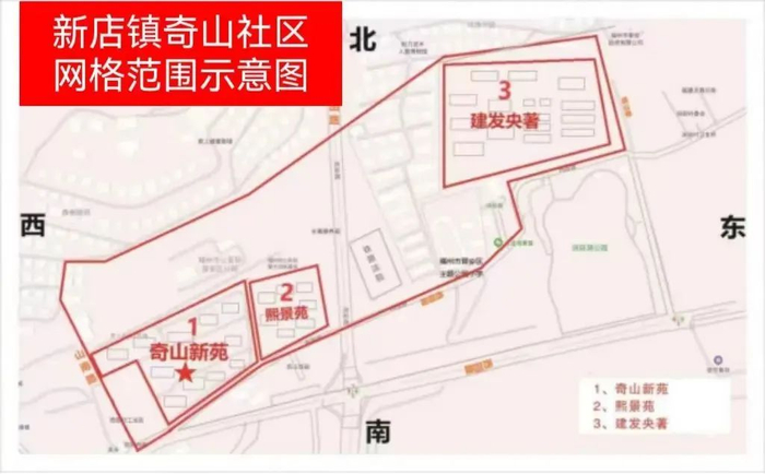东起涧山巷;西至山南路;南至西园路;北至涧田路,下辖奇山新苑、熙景苑、建发央著3个小区网格。