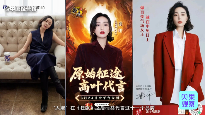 陈书婷敢爱敢恨的性格,让高叶圈粉无数,而广告商也正是看中了这一点。从平民手机到豪车,大嫂在《狂飙》之后一共代言过十一个品牌、还拍摄了很多封杂志大片。