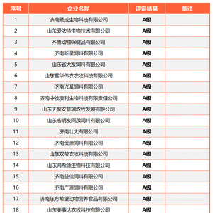 2022年度山东省饲料生产企业分级评定名单