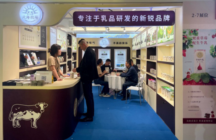 近日,北海牧场携自家产品矩阵亮相春季糖酒会。