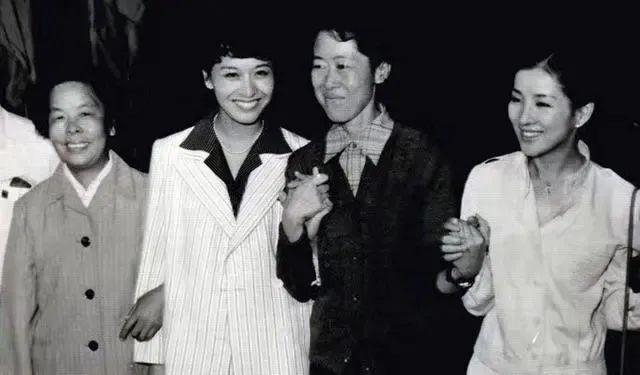 20世纪80年代初,刘广宁(右二)等配音演员在沪接待栗原小卷(左二)等日本电影演员到访