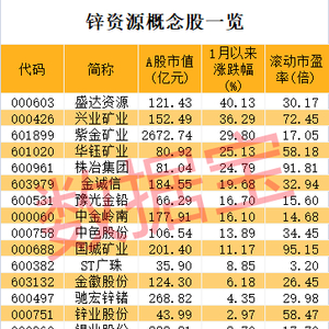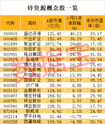 锌资源概念股年内跑赢大盘