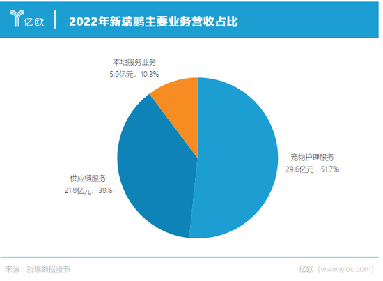 招股书显示,2022年宠物护理业务年营收29.6亿元,占总营收51.7%,同比2021年的29.7亿略微下降;供应链业务年营收21.8亿元,占总营收38%,同比2021年的12.8亿增长70%;本地服务业务年营收5.9亿元,占总营收10.3%,同比2021年的5.2亿元增长了13.4%。