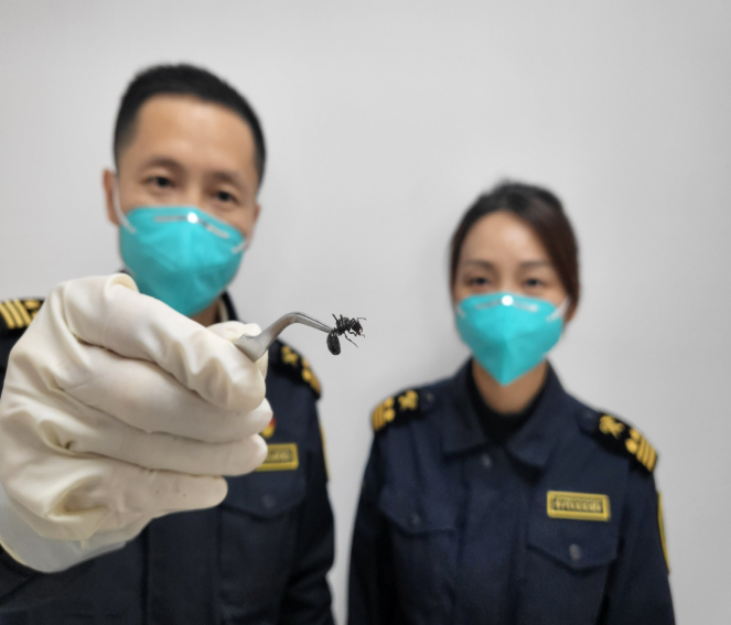 2022年11月1日,武汉海关所属邮局海关在对当日进境邮件进行审图过程中,查验关员发现一件邮件图像呈现“盒状物”图案,申报品名为“鱼线”,结合进境“异宠”多为塑料盒或塑料管包装,审图关员立刻对该邮件进行查验。经开箱查验,该邮件内装塑料密封盒4个,每个塑料盒内部填充有吸水纸,并有活体昆虫1000余只,经实验室鉴定为野蛮收获蚁。该蚁种性情凶猛,集体作战,有收集植物种子并储藏在巢穴中食用的习性,对农作物生产造成损失,在西班牙东北部耕地中曾造成46%~100%的种子损失。