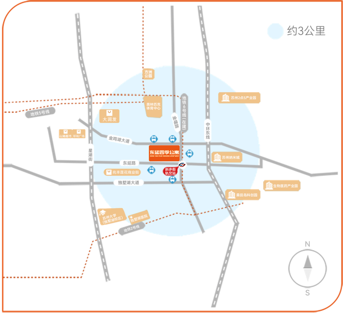 紧邻地铁6号线斜步站,毗邻独墅湖大道、金鸡湖大道、星湖街、中环东线等主要交通干道。周边通达多条公交线路。