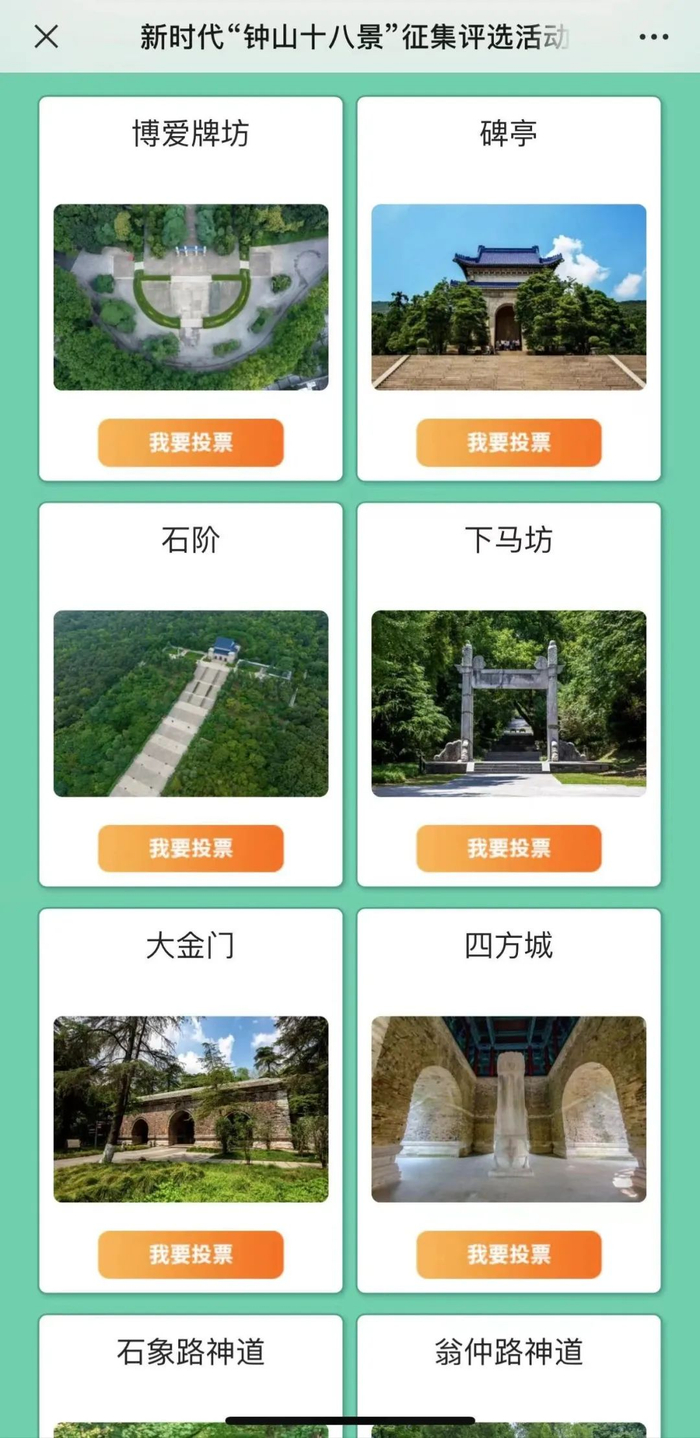 所有这些关于钟山风景区带给大家的美好回忆,都浓缩到了新时代“钟山十八景”征集活动收到的投稿中。即日起,优秀景名将开启网络投票,快去pick你最喜爱的宝藏风景吧!