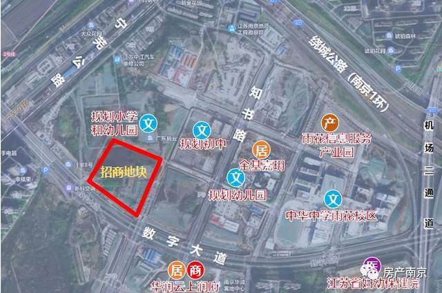 片区教育资源丰富,地块东侧已建成中华中学雨花校区、北侧规划建设小学、初中各一所,规划幼儿园两所,其中初中今年6月将竣工。地块东侧靠近片区配套建设的居住社区中心,配套较大规模的社区商业,可形成片区内公共生活配套中心。东南侧为数字城核心区地块,将由华润置地建设大型综合体商业及办公。地块紧邻数字大道、机场二通道等城市主干道,可快速通达主城核心区、河西新城、南部新城以及南京南站,片区内路网已成型,通达性强。地块毗邻地铁S3号线贾西站,居民可慢行、公交、机动车多种交通方式出行。(具体情况以正式公告为准)