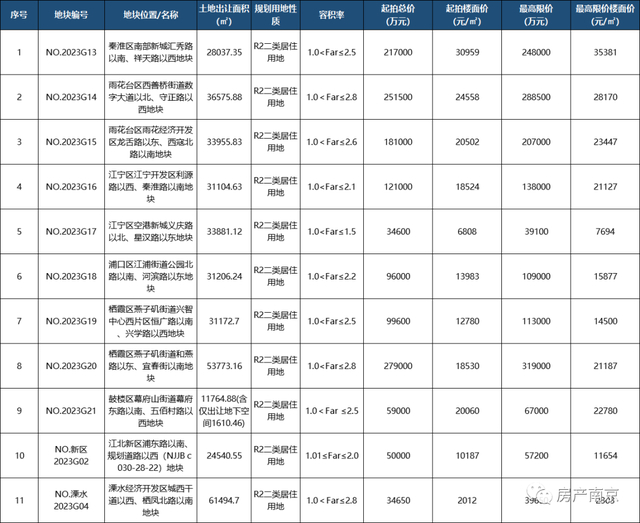 11幅宅地涵盖南部新城大校场、雨核、雨花人居森林示范区、兴智中心、燕子矶、幕府创新区、江宁、江北新区、江浦及溧水。本批宅地的起拍总价约142.335亿元。