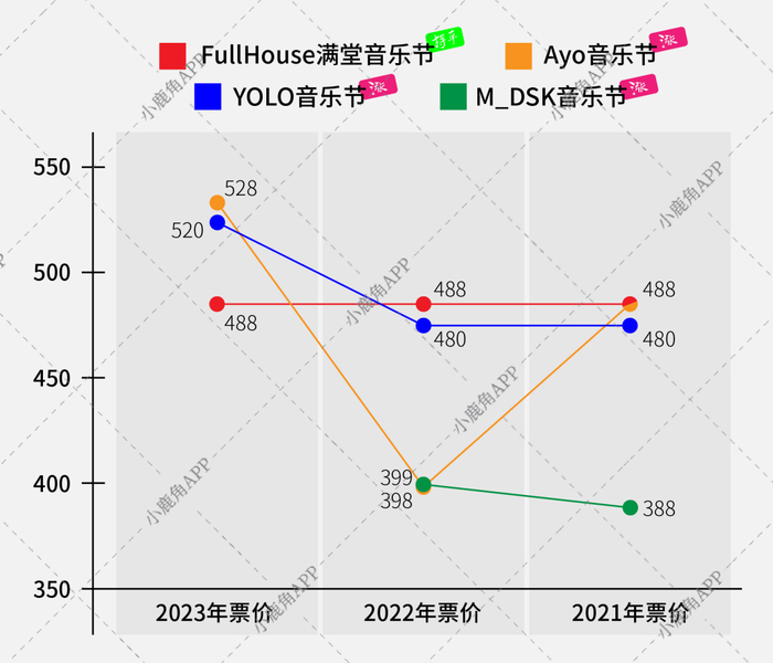 去年,说唱歌手姜云升的单日演出门票涨到700元被“口诛笔伐”,在舆论压力下,演出票价在圈内成为一个相当敏感的话题。通过数据分析,我们发现说唱音乐节的门票确实呈上涨趋势,但票价在涨幅后并没有超出消费者所能接受范围。