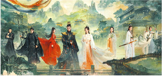 该剧在服化道、特效呈现上,独辟蹊径地采用了古典神话风和敦煌文化审美,剧中的上清神域、逍遥宗、衡阳宗、景国等多个重要场景,有的呈现古典神话意境,有的融入东方园林审美,有的呈现唐朝建筑的独特审美,有的打造成神秘的花界。该剧的特点就是在建筑、场景、服化道上追求多元审美元素的混合。剧中角色衣裳的颜色变丰富了,而且在大婚、身份转变等剧情“名场面”上,用特效和服化道突出敦煌风审美,浓郁瑰丽的大红色彩运用与之前仙侠剧的服化道有所区别。敦煌壁画风格审美元素除了用在服装上,还用在各种道具上,比如“过去镜”“锦雾绫”“峨眉刺”等,也均蕴含着浓郁的敦煌色彩。灵动、华美的风格,敦煌标志性审美元素的运用,确实成为这部剧最大的卖点。