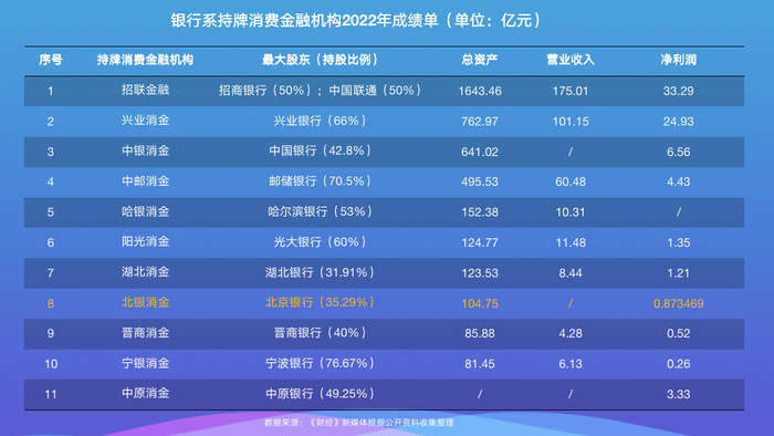 北银消金2022年净利润8735万元,不及多数银行系持牌消金机构