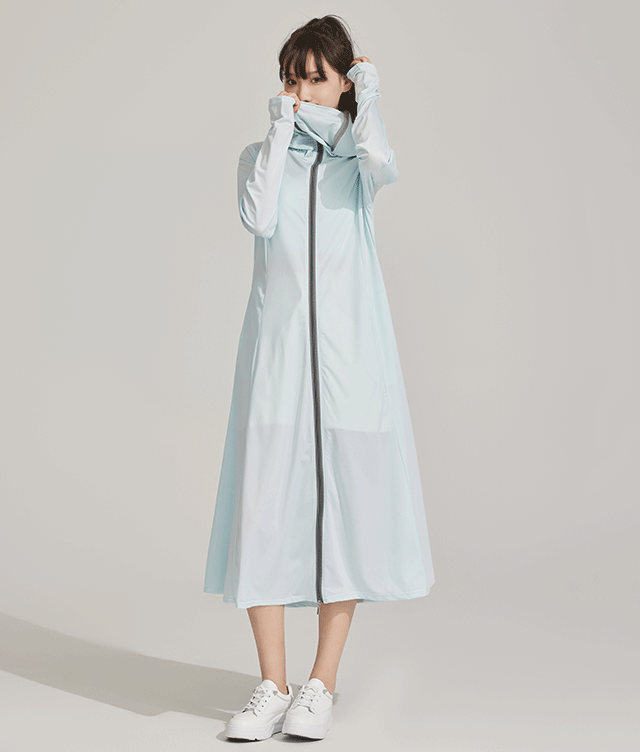 这件超长款防晒衣,一穿上就很有“安全感”: