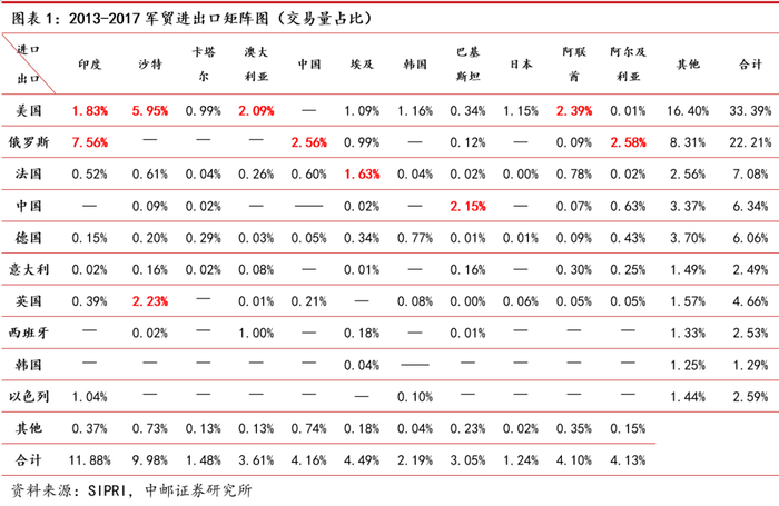 中邮·军工|军贸行业专题报告:全球军贸进出口矩阵