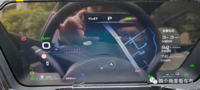 最近百公里的平均能耗表现为4升/百公里+7.1度电/百公里=6.1升/百公里。笔者认为这个油耗表现还是相当不错的,毕竟试驾的过程中驾驶风格比较激烈。