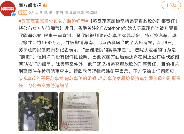 苏享茂的家人,还将翟欣欣告上了法庭。
