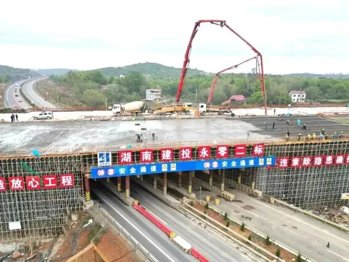 4月6日,历经10余小时的连续作业,随着永零高速二标永州西互通K18+443.5夏家冲大桥右幅顶板混凝土浇筑顺利完成,实现了跨冷东城际快线双幅贯通,再次刷新了项目建设“进度条”。