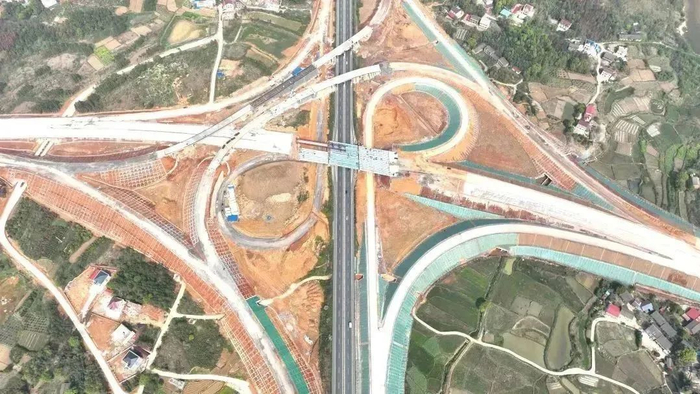 马坪枢纽互通上跨二广高速主线桥位于衡永高速终点和永零高速起点位置,上跨二广高速,是连接衡永、永零两条高速的重要纽带。该桥贯通后,从衡永段到永零段主线将不再受二广高速阻隔影响,方便材料运输和大型设备行驶,进一步提高了交通运输能力,为工程施工带来了便捷。