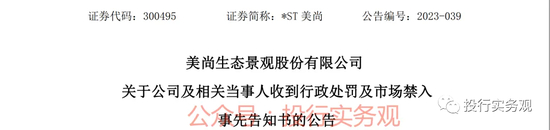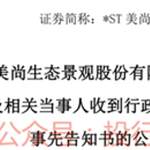 4月11日,上市公司美尚生态景观股份有限公司(以下简称:*ST美尚或上市公司)发布《关于公司及相关当事人收到行政处罚及市场禁入事先告知书的公告》,具体情况如下: