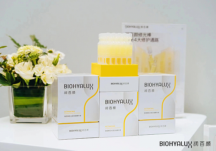 而润百颜针对抗氧化的“修光棒”则是运用玻尿酸复配专利,以及玻载技术搭配EUK-134、华熙麦角硫pro、超活VC、肌肽、黄苓苷五大抗氧活力元,修护光损氧化。