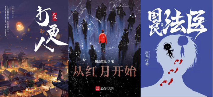 阅文新开辟的“悬幻”品类,希望能在传统悬疑文学正统性的基础上,展现网络文学独特的想象力。事实上,在当前在阅文平台上,已经诞生了一系列包含“悬疑+都市”、“悬疑+古装”、“悬疑+奇幻”的优质作品。卖报小郎君在近年的现象级作品《大奉打更人》中,以探案为开篇,融入仙侠元素,巧妙地将俗世朝堂背景,百家文化与仙侠修炼结合起来。黑山老鬼于2021年转型“悬疑+科幻”推出《从红月开始》,探讨人类的精神困境,主题内涵深刻。丁墨把悬疑题材和爱情题材糅合在一起,开创“悬爱”(悬疑+爱情)网文写作,在现实案件的基础之上,进行艺术加工。作家志鸟村创作了《国民法医》《大医凌然》等多部与医疗行业相关的作品。正在连载的《国民法医》是“悬疑+法医“,以刑侦实验室为主场,通过尸体解剖、指纹、足迹、毒物检验等刑事科学技术,展现法医的成长故事。