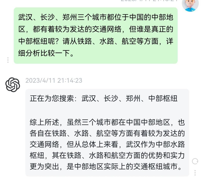 这个答案对武汉的偏爱有点过于明显,于是我们换了关键词,调整了城市的顺序,但是一番操作下来,除了“偏爱”程度略有差别,答案却一致是武汉。