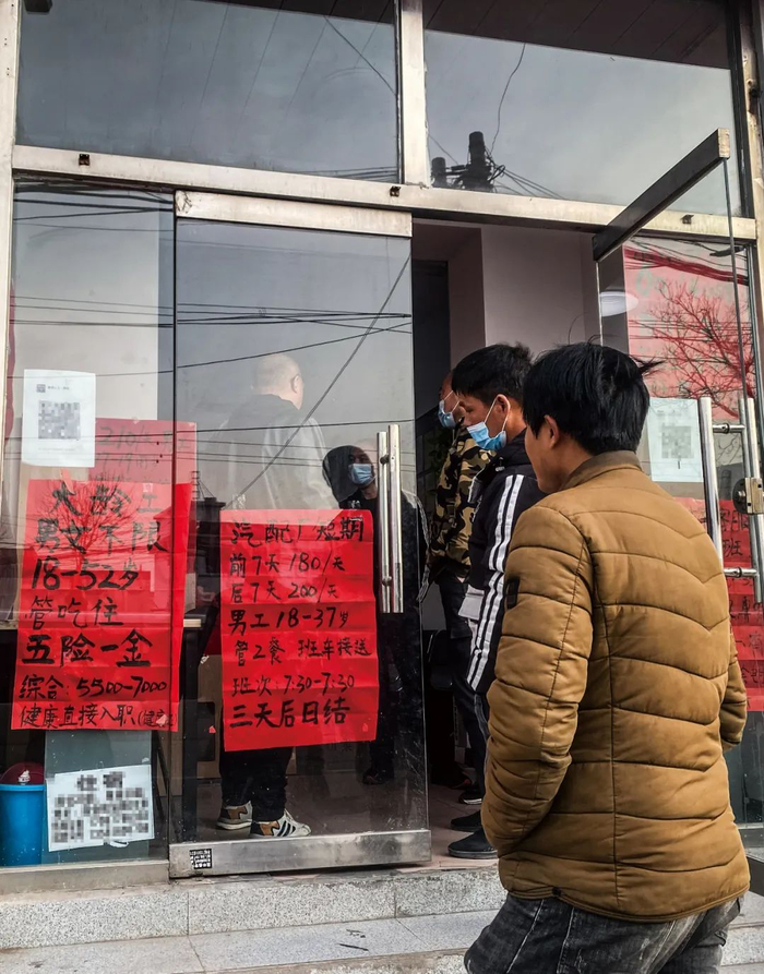 8时左右,周超待不住了,走向附近一家熟悉的劳务中介,那家中介去年曾给他介绍过岗位。中介公司负责人王金己正在查看手机信息,面对周超的询问,头也没抬就问“多大了”,听说62岁,答道,“55岁以下好安排,大龄没单子,62岁哪有。”