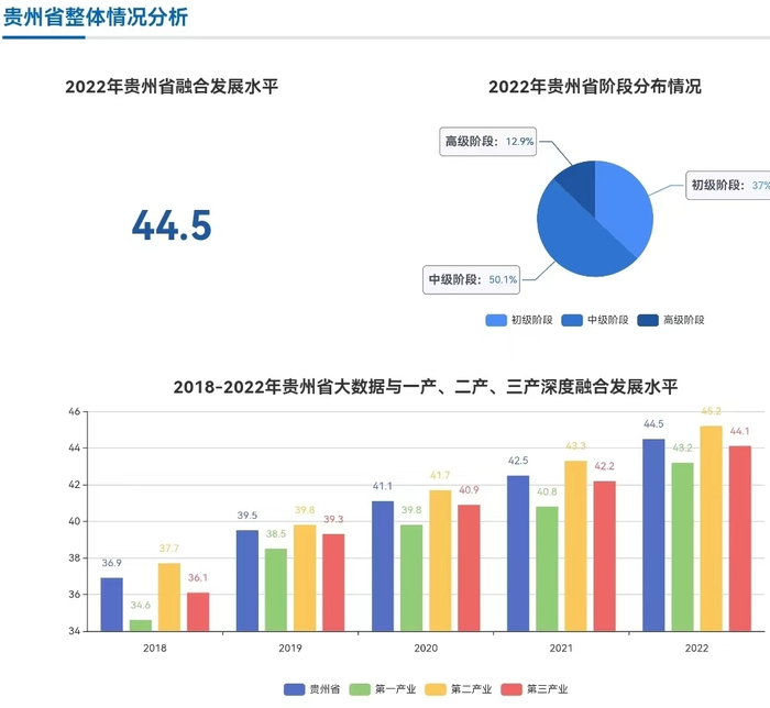 《方案》明确,到2025年,贵州省大数据与实体经济深度融合水平达到46,一二三次产业规模以上企业基本实现融合升级全覆盖,进入融合中级阶段以上的企业占比达到65%左右,各市(州)融合水平整体进入中级阶段。