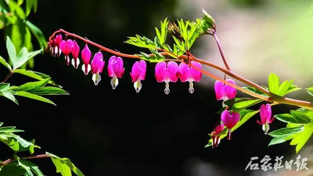 另外,为满足游客的欣赏需求,今年新栽植了荷包牡丹,其花朵奇特,花色娇艳,犹如小荷包似的悬垂在枝头,倩丽优雅,再加上其叶片颇似牡丹叶片,因而受到人们的关注和喜爱,在我国有着一千多年的栽培历史。目前荷包牡丹也正值花期,长长的花序,整齐地缀着大大小小的粉色爱心,非常可爱。