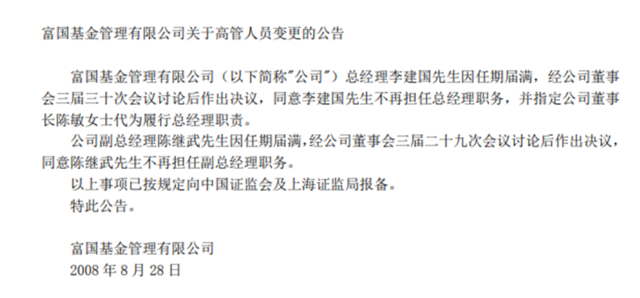 2008年,富国基金的上级部门,启动了富国基金总经理、副总经理的全行业公开招聘。