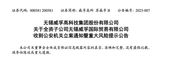 突发!A股公司威孚高科,子公司或被合同诈骗,公安已立案!