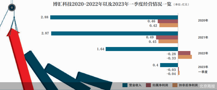 今年一季度,博汇科技归属净利润继续出现亏损。财务数据显示,今年一季度,博汇科技营业收入约为4016万元;对应实现的归属净利润约为-257.1万元。