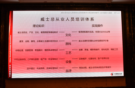 专委会副秘书长支彧涵在现场向与会代表介绍了威士忌酿酒师培训教材、课程教学及技能考核设计方案。威士忌酿酒师培训教材、课程教学及技能考核主要面向威士忌行业相关从业人员使用。旨在帮助学员掌握威士忌的酿造与品评等基础知识和专业技能,具备威士忌生产企业、品牌推广部门、市场营销部门等相关岗位的职业素养,助力中国威士忌行业的技术化、标准化行业发展。